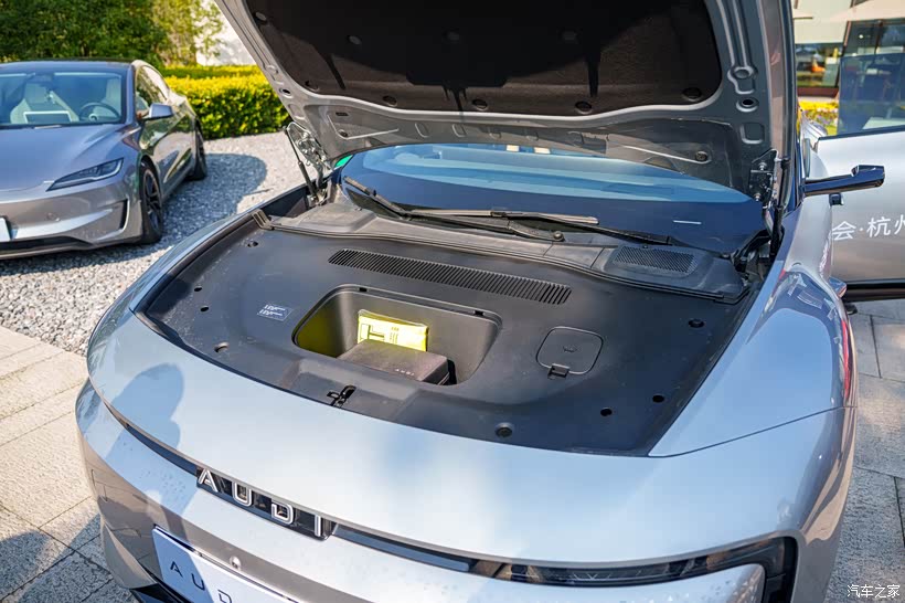 奥迪E5 Sportback打开前备箱后,液压杆下有一个带盖板的储物空间,可以收纳应急设备,而在车身之下,旗舰quattro型搭载双电机四驱系统,最大功率579kW,峰值扭矩800N·m,官方百公里加速3.4秒,同价位性能领先。