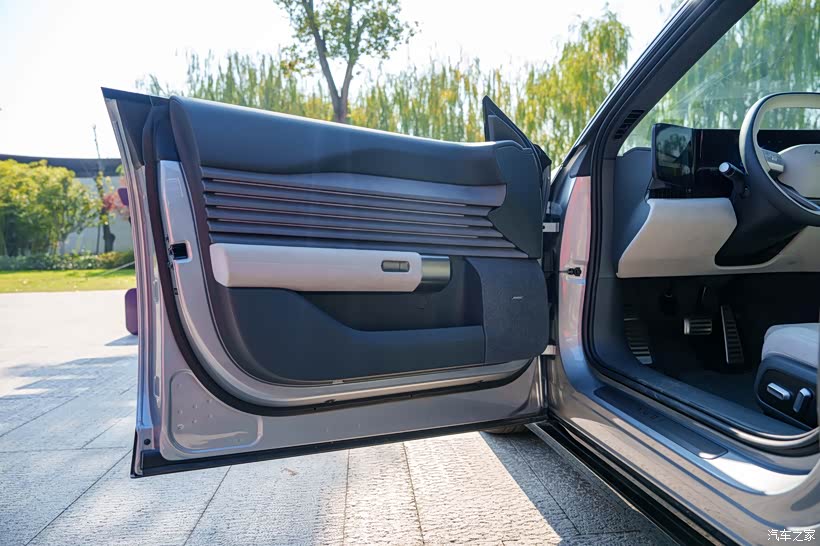 侧面配备无框车门与隐藏式电动门把手,前后车门都是双层隔音夹胶玻璃,而且是全系标配!
