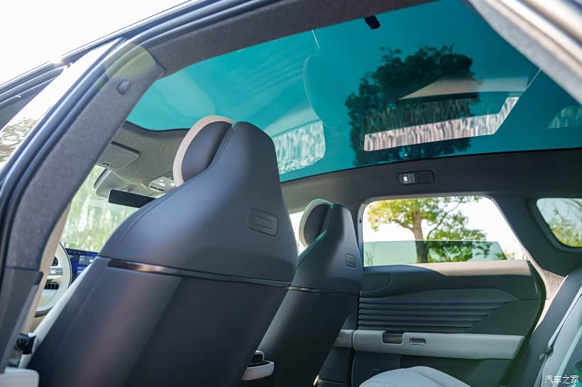 比较可惜的是没有顶部眼镜盒设计,以及除了顶配以外,头顶全景天幕不能调整透光率,后期还要车主自己买个物理顶棚。