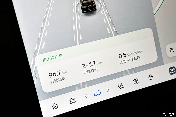 上了高速后由于继续一直下坡,总里程行驶至96.7km时综合能耗来到了0.5kWh/100km,再下点坡都能跑成永动机了,哈哈哈~