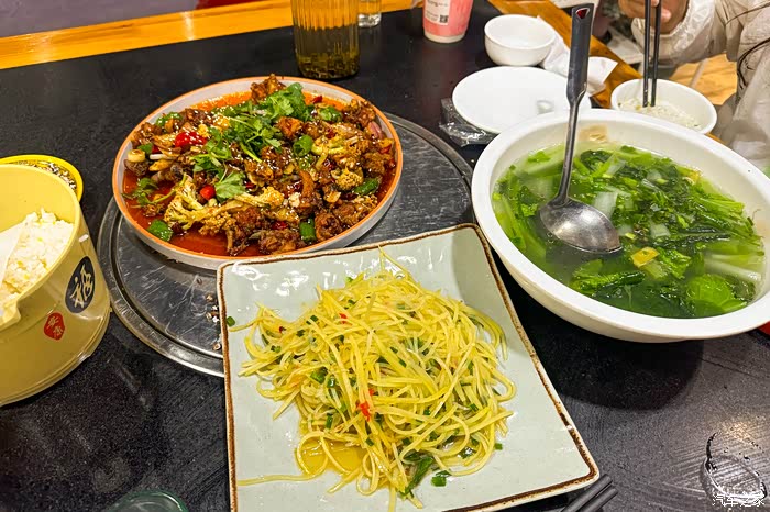 看完日照金山,结束第一天的行程,回到新都桥镇上吃饭。没点藏餐、牦牛肉火锅这些,上个月去茂县吃牦牛火锅感觉太顶了,所以这次选择了一家川菜。一份干锅鸡 + 一份酸辣土豆丝再加一份蔬菜汤,134元,在这种景区也算正常了。不过让我没想到的是,这家餐馆竟然在平台上有90抵100的券,平台还补贴6元红包,相当于84抵100,这你受得了吗!