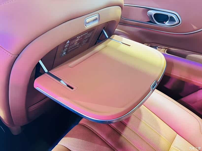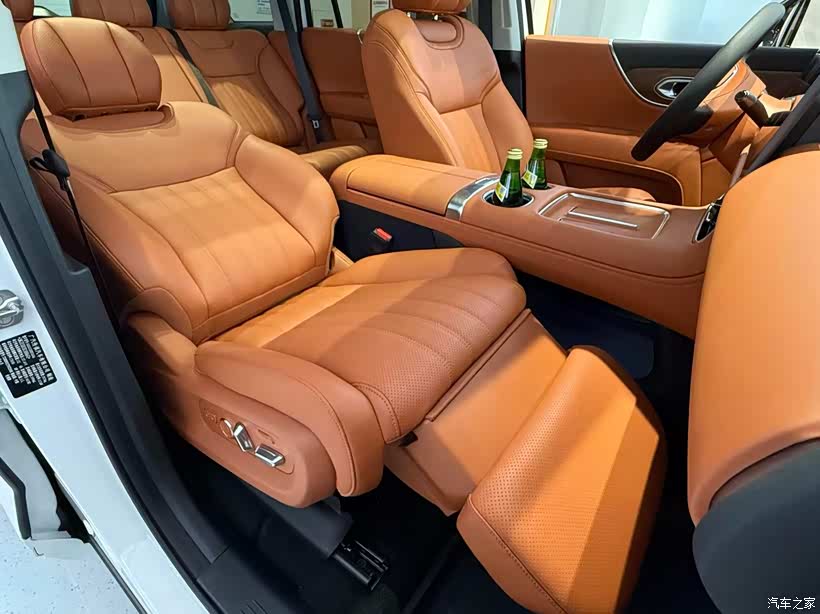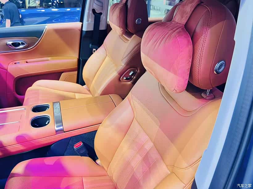 看完了大五座车型,咱们再来看看六座车型。六座车型在二排配备了两个独立座椅,高配车型这两个独立座椅除了加热和通风外,还带有10点式的按摩功能。两个座椅都支持电动调节,并且靠背的调节角度更大,能达到148度,乘坐更加舒适。并且六座车型带有副驾背后的折叠小桌板,更具有商务属性,并且在副驾座椅靠背一侧配备了老板键。