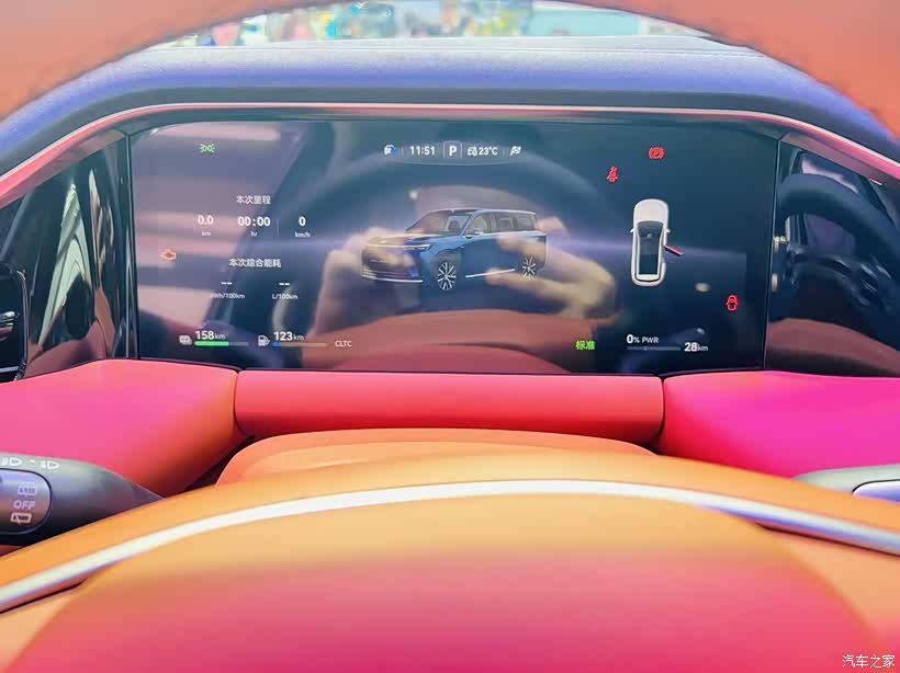 全系标配12.3寸的液晶仪表,显示效果非常清晰显示的车辆信息也很全面 ,在行车过程中,激光雷达扫描的路况可以完全显示在液晶仪表上。