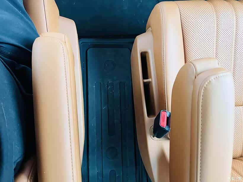 两个独立座椅之间的通道宽度还是非常不错,只不过二排座椅下与地板形成了一个不高的地台,所以第三排的座椅高度相对来说会略矮一些,更适合身高相对矮一些或女性乘客坐在后排。