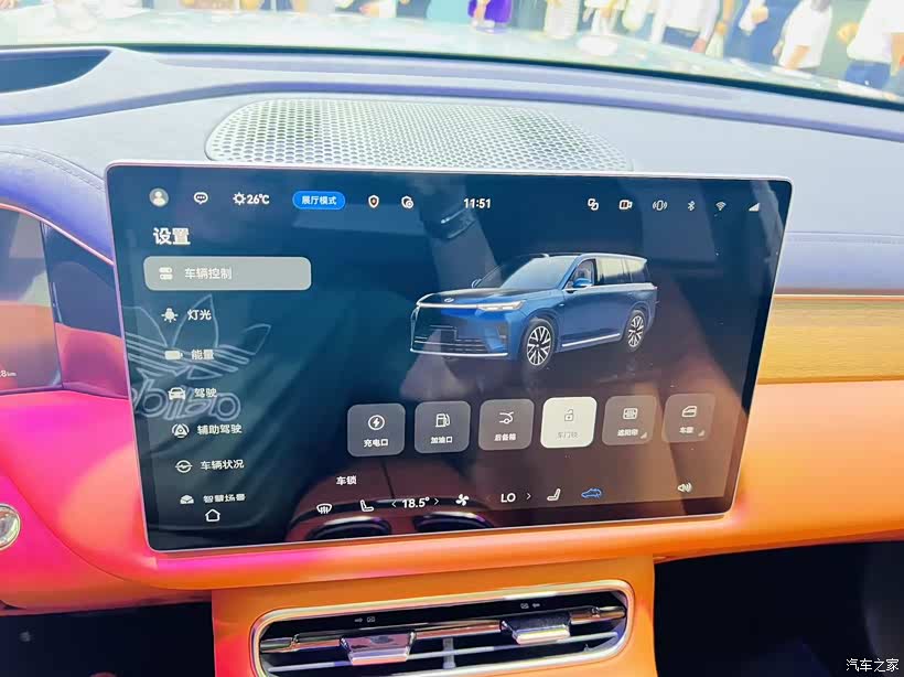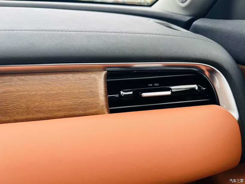 车内采用了守护之翼环抱式座舱设计。在内饰用料上也绝不马虎,触手可及处均为软性材质包裹,橙色部分均为皮质包裹,副驾部分还采用了与车门内门板相同的黑胡桃木实木装饰板,可见车内的豪华感是非常足的。除此之外最重要的就是内饰部分用料也是采用的环保材质。