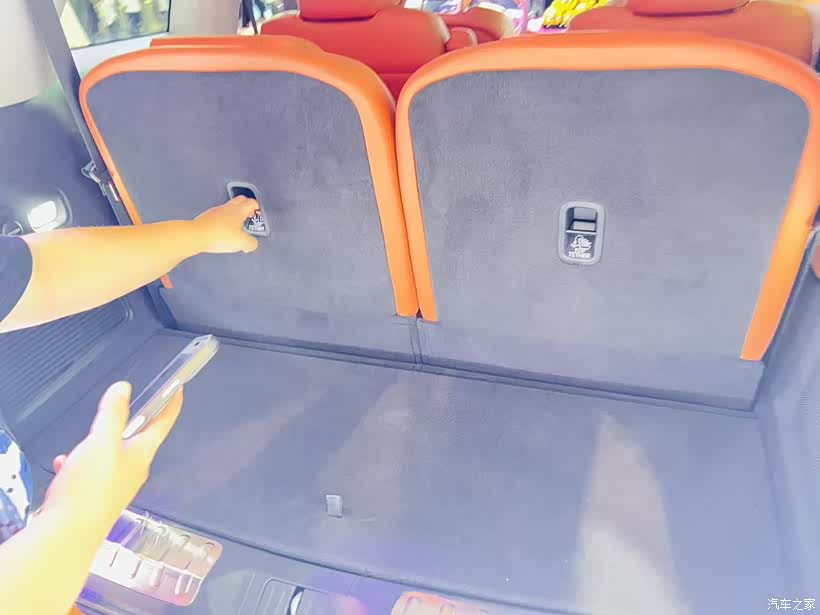 常规状态下六座车型的后备箱空间也只够作为短途出行使用,不过第三排座椅支持电动放倒,放倒后座椅靠背与后备箱地板持平,可以增大不少后备箱空间,个人觉得如果购买六座车型,平常还是放倒第三排座椅使用。