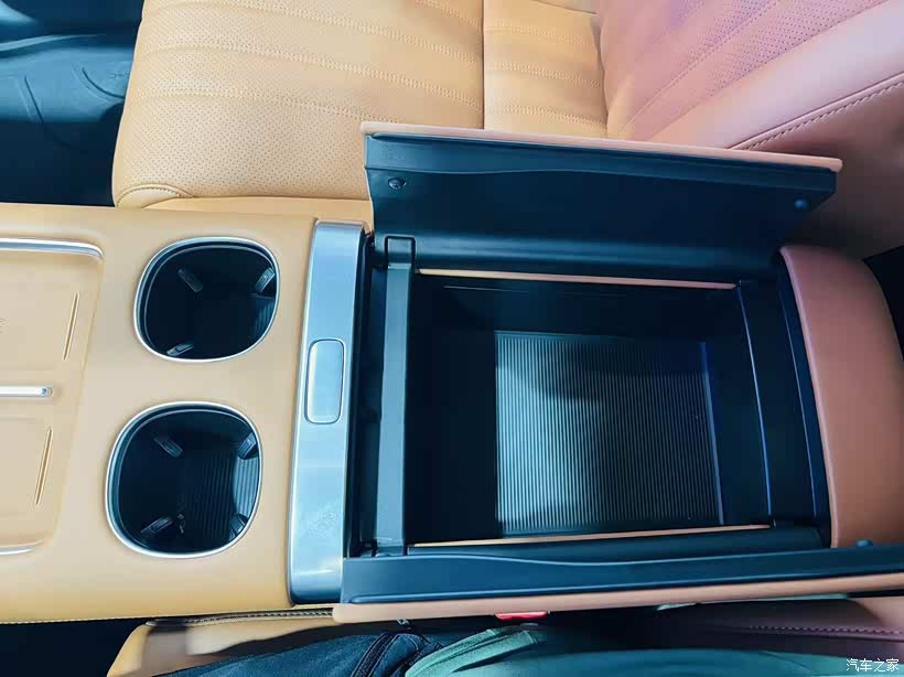 在中央扶手下方还有隐藏的置物箱,偶尔放些饮料也非常方便拿取。