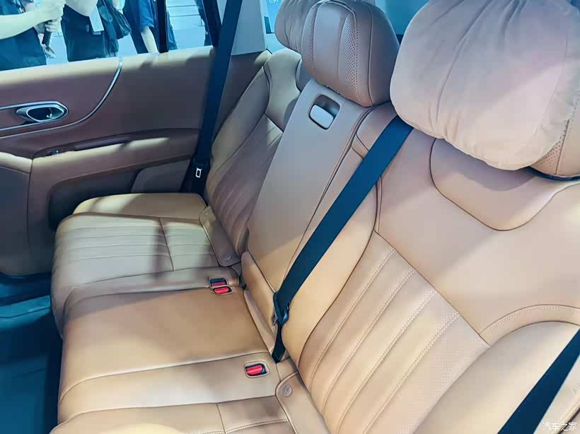 打开二排车门,传祺S9的二排车门打开角度非常大,对于家里老人上下车非常的方便。这点要给传祺点赞,设计的细微之处也是为了家庭和商务接待考虑,而且二排车门全部采用皮质包覆,也体现了车内的高级感。