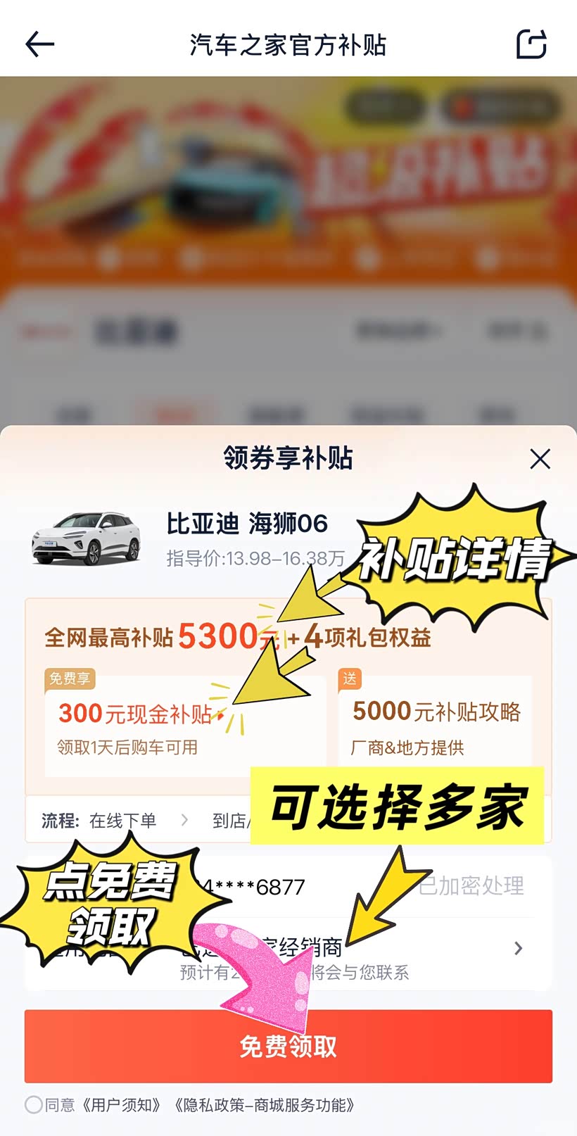 汽车之家购车补贴说明(购车前在汽车之家APP上领取才可以) : 汽车之家官方的补贴活动,覆盖上千款车型都可领取,最高可领4000元补贴;且与厂家无关,可与4s店优惠同享优惠。