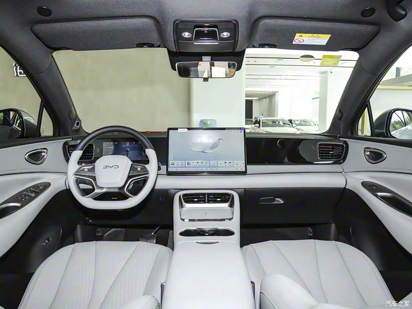 内饰有海韵灰或曜夜黑两种配色可选,搭配哑光金属饰条,质感非常不错,告别同价位车型常见的塑料感,双悬浮式仪表台搭配怀挡设计,让中控空间显得开阔整洁,车内配备12.8英寸旋转 Pad,搭载 DiLink 100 智能座舱,支持 ONE ID 跨设备同步,方便实用。