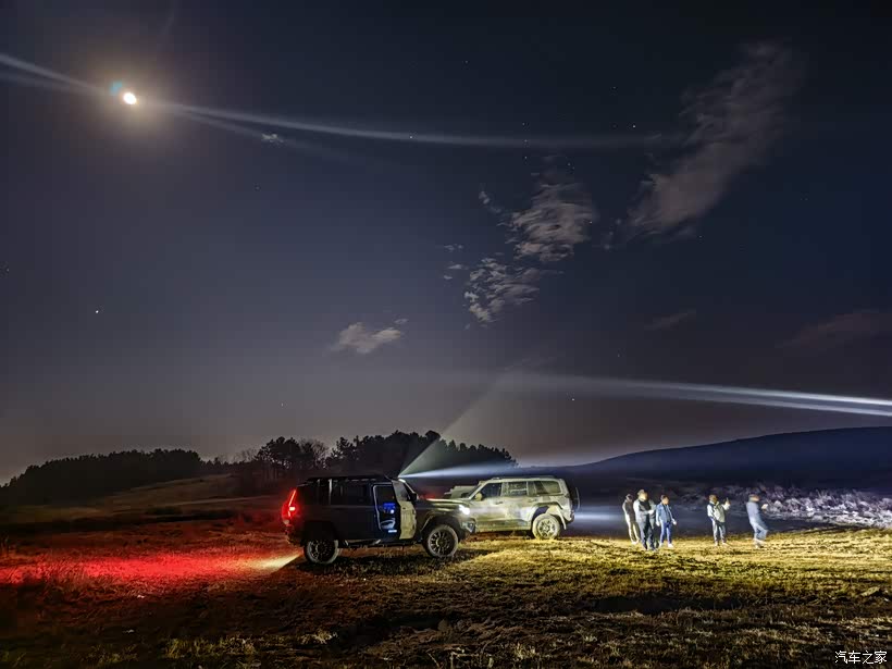 当救援现场的喧嚣热闹如潮水般退去,只留下荒野的寂静,为了节省电力,关闭了电门,高挂天边的圆月散发着清冷的光辉,月光透过糊满泥巴的车窗洒在我和内人的身上,我和内人默然相对,享受着难得的独处时光。良久,内人幽幽启声:“好久没有看到这种没有灯光污染的圆月和广袤的星空了,那还是以前小时候的记忆了,真想在这里露营”,我闻言心中一动,如果现在不是车陷沼泽,真的可以考虑在野外露营。猛士M817的后备箱空间完全可以扩展成2.1米的双人床,在车里透过大天窗看星空,和爱人相拥而眠,未尝不是一种另类的生活情趣