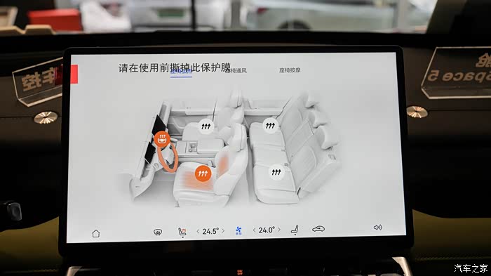 车辆座椅采用的都是nappa皮,手感非常细腻。座椅通风按摩一应俱全