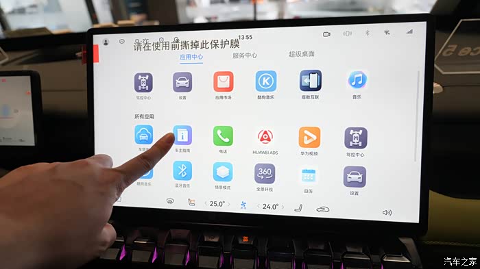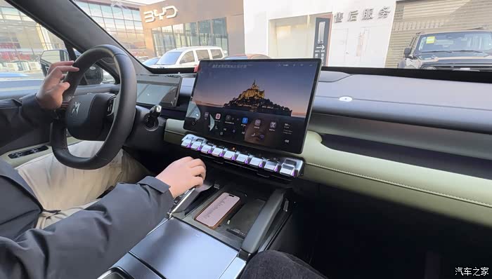 车辆搭配的一个15.6英寸的中控大片,配合上华为的乾坤系统,整体操作感非常丝滑,各种功能也非常齐全