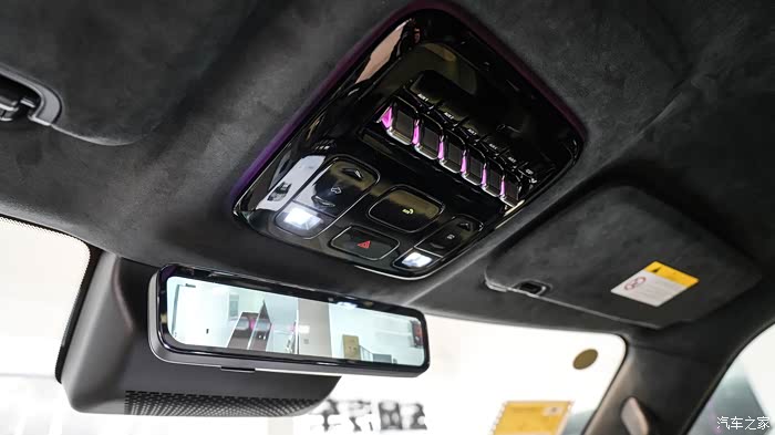 看完外观我们来到内饰,内饰区别于外观的硬派,内饰看起来非常的豪华有质感,采用的左右对称的结构,给人一种很正派的感觉。整个内饰能摸到的地方都是有皮质包裹,手感细腻,顶棚还采用了麂皮凸显豪华感。