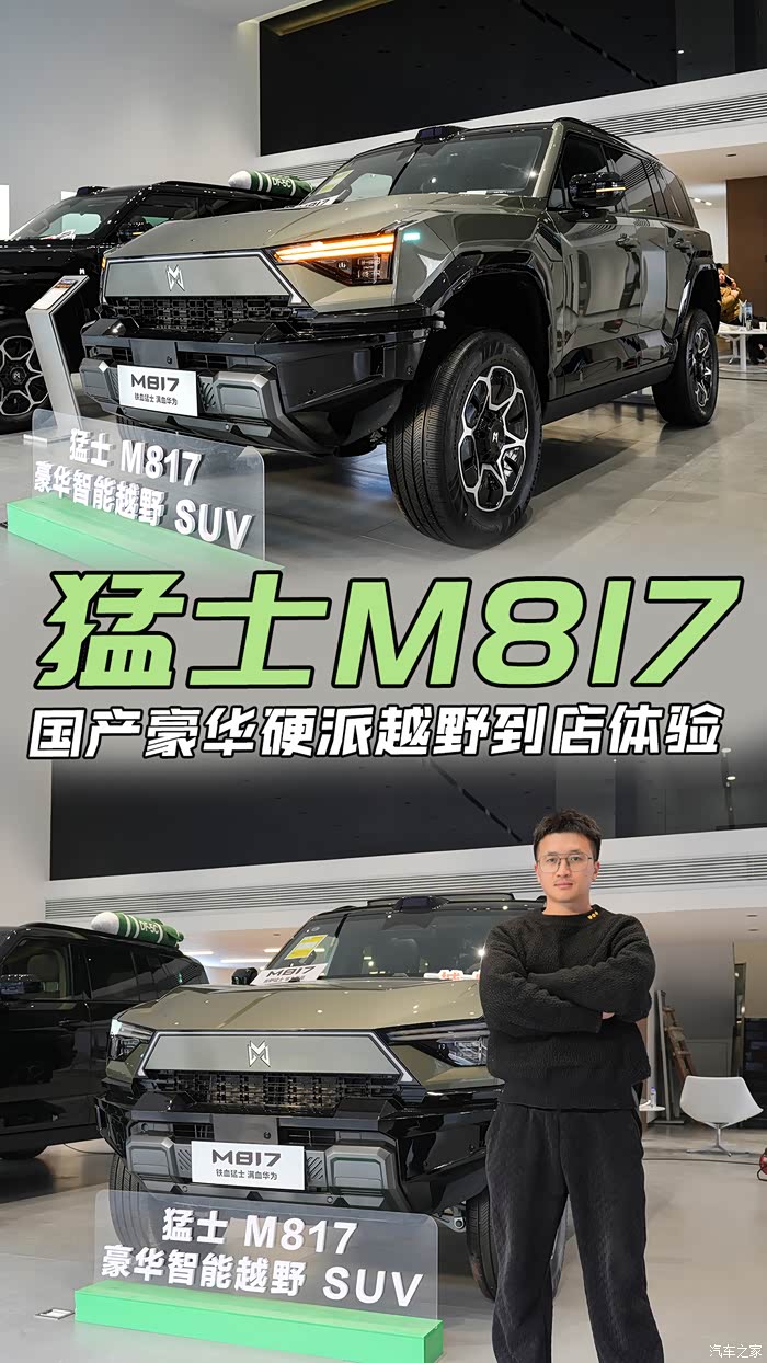 今天给大家带来一员猛将,一个豪华硬派越野SUV——猛士M817 前几天参加汽车之家冬测的时候就体验了一下这辆车在冰雪路面上的一个越野性能,要知道冰雪路面开车都费劲何况是越野科目了,但是令我很惊喜的是这辆车通过的非常轻松,而且在车内坐着的时候感觉整个避震底盘也很舒适不像一些硬派越野车那是真硬啊里外都硬。这让我一下子就对这辆车产生兴趣了。所以今天我就准备来到店内看看这辆车到底怎么个事!