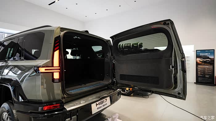 车辆的尾部方方正正,取消了备胎的设计改成一个储物箱,也可以理解毕竟一个轮子还是很沉的这样可以减小不少的电耗。