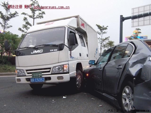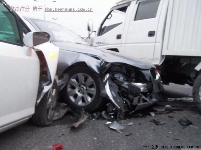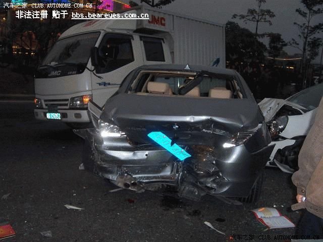 飞度追尾宝马左后方,导致宝马车头偏向右侧,再被江铃货车刮蹭右前方。宝马驾驶位气囊弹出,飞度前排双气囊均弹出。人员伤亡不祥。现场无血迹,车内也无血迹,估计受伤不严重。飞度没有一些人说得那么不安全。