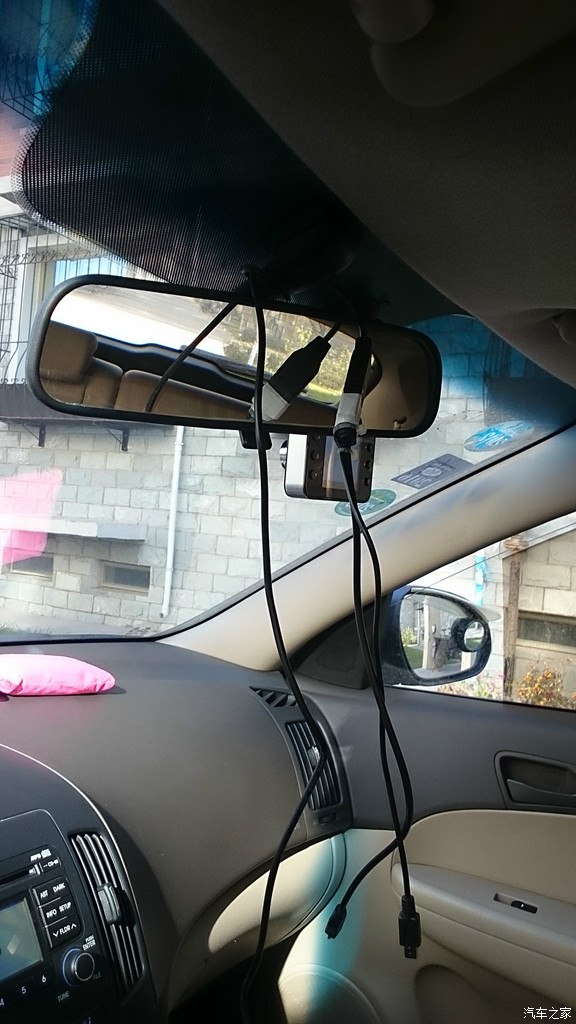 开始布线,先把降压线在后视镜后的支柱上系个扣临时固定好降压线。
