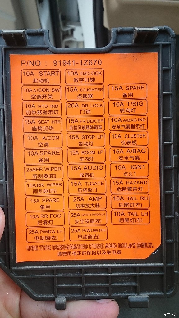 拆下保险盒面板后,可以看到第一列倒数第三行是备用,计划就用这个保险位置,这个位置是熄火后不断电的,可以保证行车记录仪24小时录制。