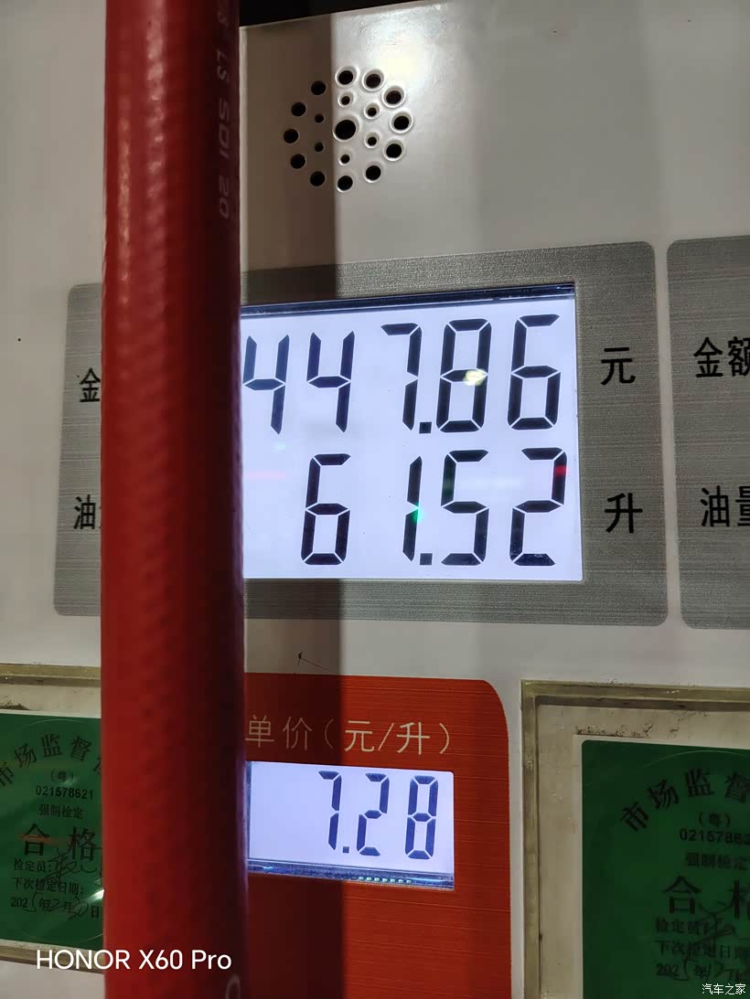油箱标定60升,显示剩余0%,但加到跳枪是62升左右,如果继续加到溢出来65升可以的