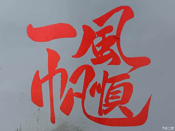 在渔船上发现一个特殊的设计“一帆风顺”组合成的一个字体。