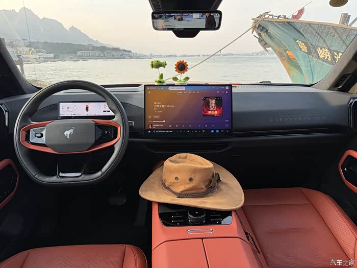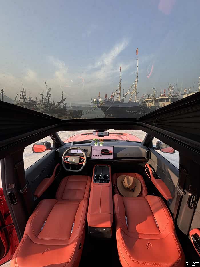 选车第一眼就看眼缘,智趣烈马的外观既有硬派的豪放,又有高端的精致。经典的方盒子轮廓,线条硬朗利落,没有多余的繁杂设计,宽体轮拱搭配黑色防擦条,自带一种野性又大气的气场,又不会显得笨拙沉闷。我选的烈焰橙配色,金属漆质感很高级。