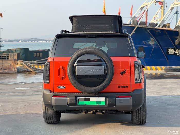 车尾没多余花哨,方正敦实。背负式全尺寸备胎,BRONCO很标识醒目,黑色的马标我很喜欢。侧开尾门实用,熏黑竖灯晚上看特别带感。要是出厂能配一个原厂轮胎罩就好了,不然会担心有坏人伤我的轮胎哈。
