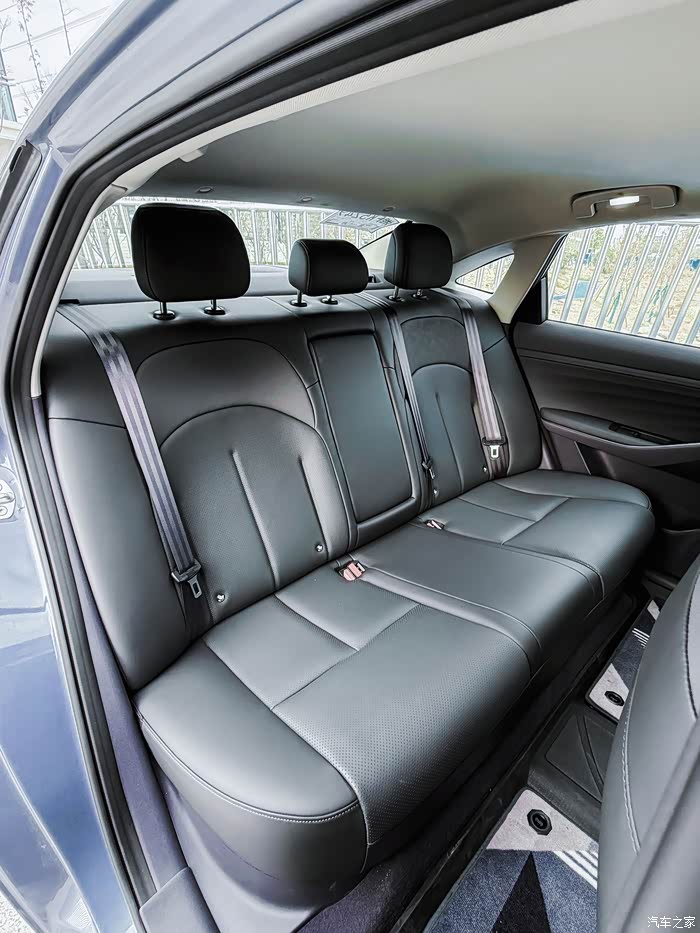 同时做三个成年人也不会觉得拥挤!2815mm的超长轴距腿部纵向空间非常宽裕,实测两拳有余!头部空间我身高178mm也有一拳有余,又由于后排纯平的地台设计, 整个后排空间和舒适性在这个级别可以说表现非常优秀!