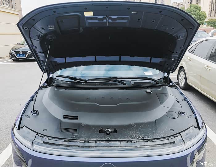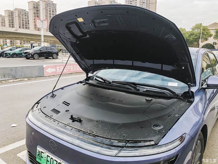 整个动力舱采用动力盖板封装,在视觉上显得更加美观高级,引擎盖进行了隔音棉的隔音处理,出于成本采用的是手动顶杆!