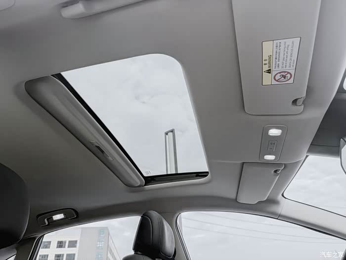 车顶棚采用浅色绒质材质,可开启电动天窗主要起到通风换气的作用,配备手动遮阳帘。对称式设计的车顶中央功能区非常简单,具有阅读照明功能和电动天窗控制键