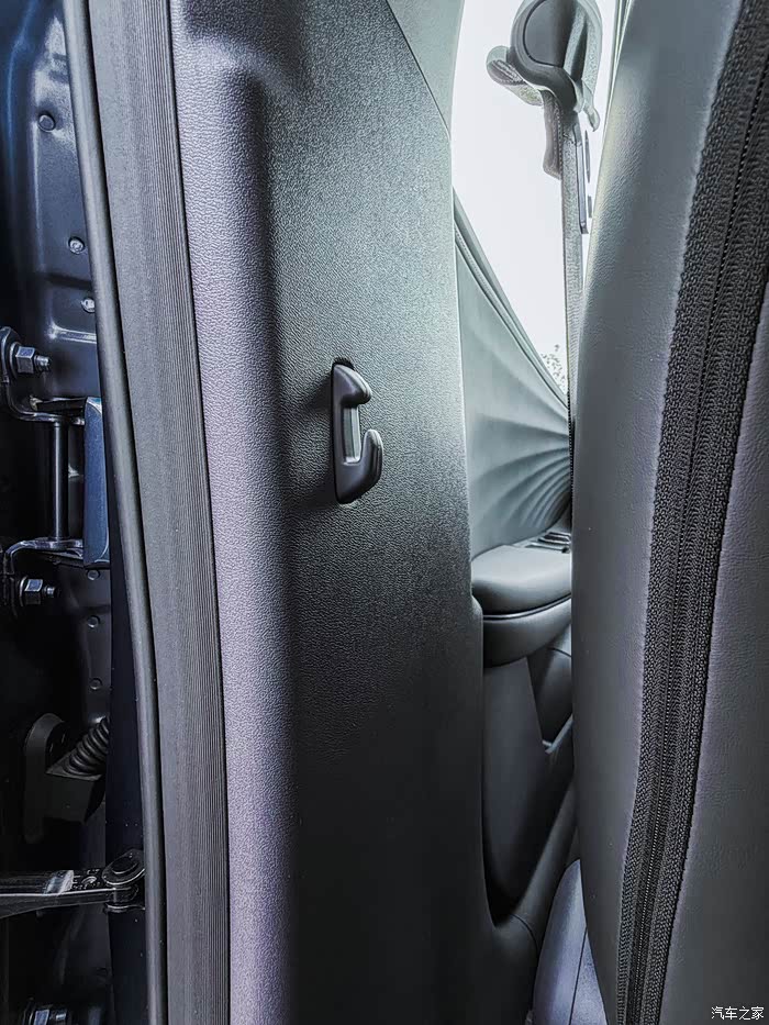 在前排靠背后面B柱设计了一个挂钩可提供后排乘客挂一些零碎随车用品,其实这些小小的贴心设计既拓展了利用空间,也给用户带来了更多的便利!这
