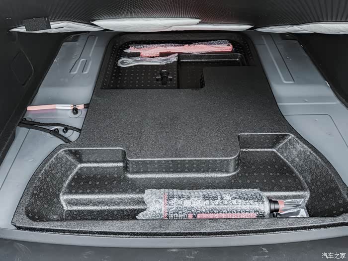 后背厢隔板下方设计了应急工具,通过分区和泡沫材质的应用来提升空间利用和静音效果!