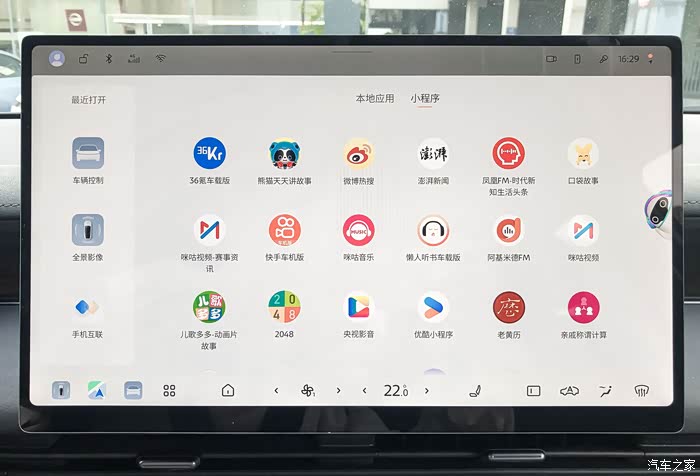 几乎所有的功能操作都可以在中控大屏实现,集成的APP也非常丰富:快手手机版、QQ音乐、能源中心、智慧场景、亲子空间、导航、车辆控制、声音空间、微博热搜、咪咕音乐、央视影音、口袋故事等等