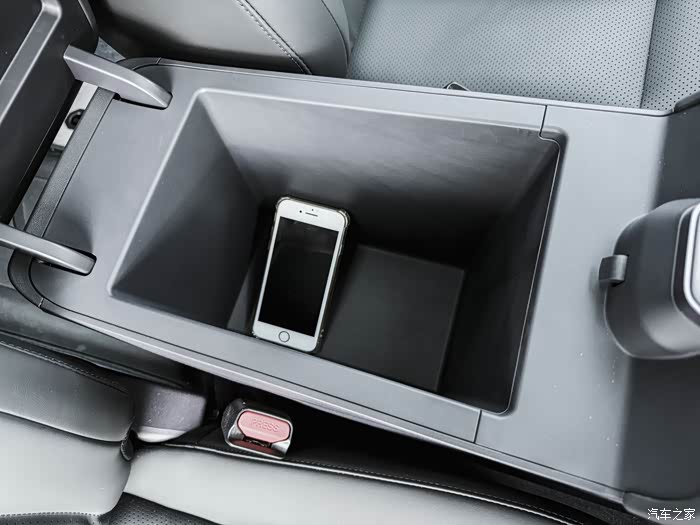 中央扶手箱内空方正、大约能放置6瓶500毫升饮料、基本能满足日常使用