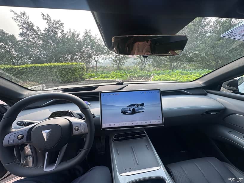 二、提车初体验:仪式感缺位但惊喜补位提车当天还有个小插曲,我跟销售开玩笑 “这车不配带两朵小红花吗”,最后啥仪式都没有就直接开溜,多少有点小遗憾~ 坐进车内的第一感受是 “颠覆”:对比以前的油车,车内几乎看不到实体按键,连仪表盘都没有,开起来全靠 HUD 显示,一开始眼睛总忍不住 “对上去”,特别不习惯。而且语音操控还没养成习惯,更没想到智驾功能需要行驶 1000 公里通过考试才能解锁,目前还处于 “看不懂也用不上” 的阶段。不过车机系统还在优化中,提车第二天遇到 HUD 显示开关消失的 BUG,联系客服后得知两个滚轮同时按就能重启车机,重启后立马恢复,也算解锁了新技能,后续还得慢慢摸索~ 自动泊车功能倒是挺实用,提车当天回车库就给媳妇演示了一遍,对她来说简直是刚需,之后在车库中在别人的注视下又用一次,操作简单成功率高。