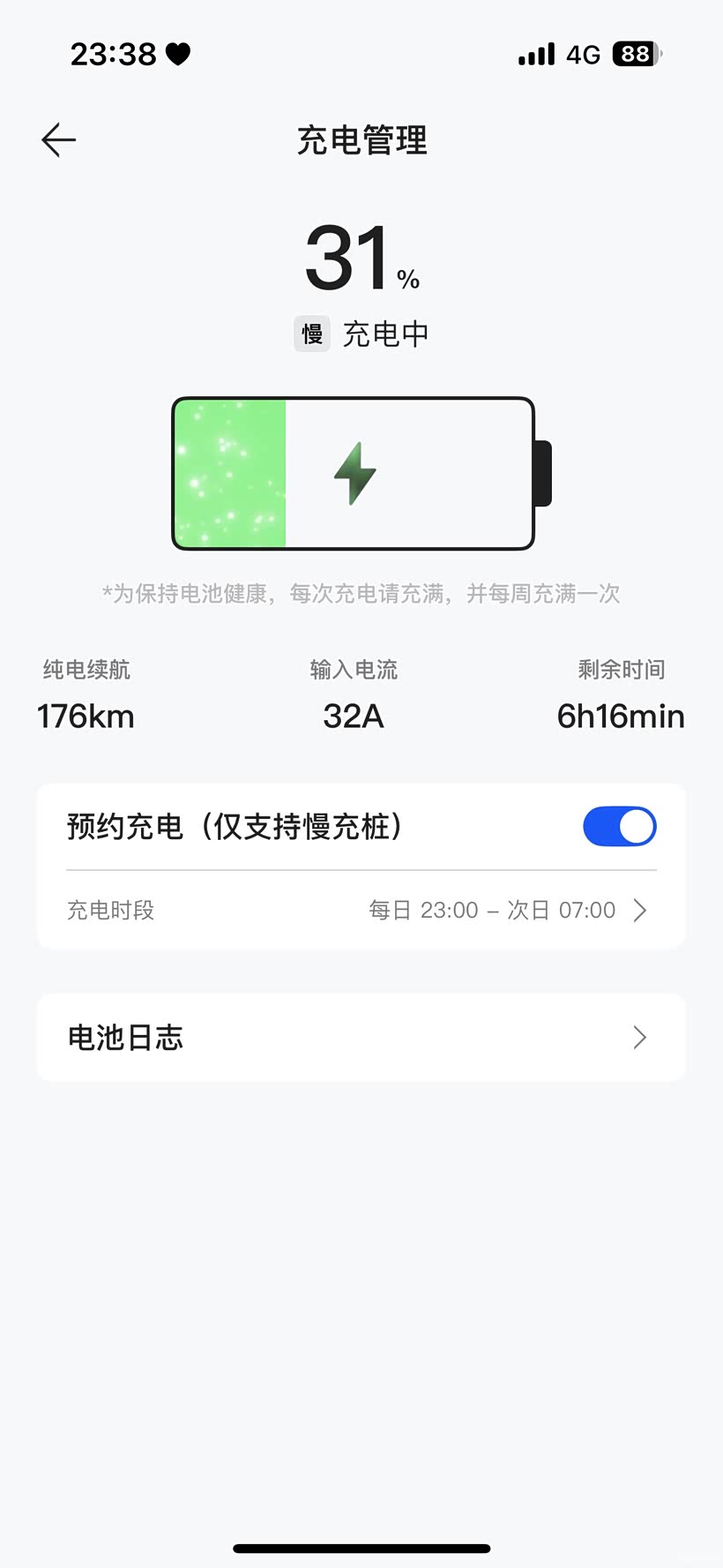 续航方面 开了7天 200多公里 就剩下这么一点电。突然又觉得电池是不是小了