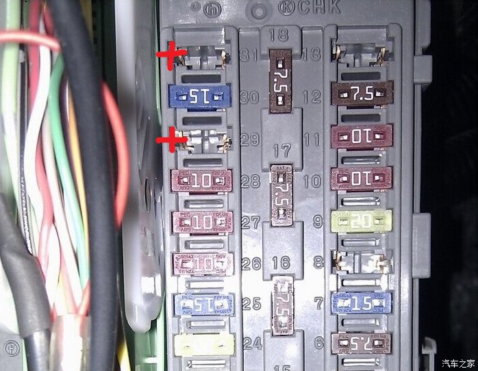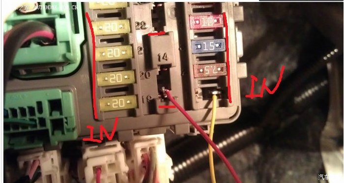就是这个样子的,上面的保险片是给红线供电的,下面的是原保险片插头,咱们使用只使用最上面的插口,不和原车电路冲突,保险片咱们准备2A、3A、和15A的若干备用。