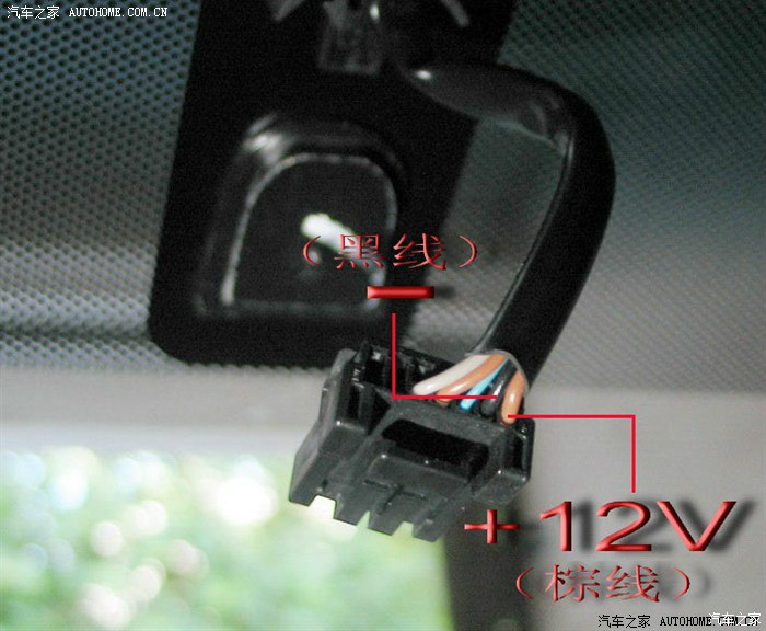 剥开保护层,黑色是地线,棕色是ACC。可以直接接这两根线ok,然后线束和原后视镜线束绑顺一起就行,(我把电源线引到驾驶侧保险盒里面了,考虑以后升级,想汽***动报警时,行车记录仪自动开启延时2分钟,这是后话)。