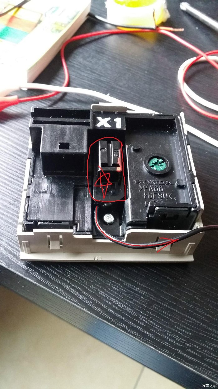 。开关推荐选用12*12高14mm的,当然13也行,直接在面罩上开孔就行,(推荐去4S点买几个面板备用,5块6一个,不用心疼)。直接上完工图。