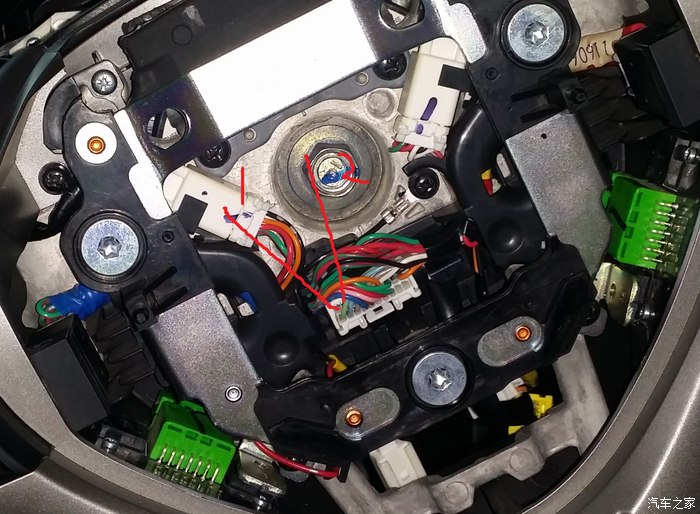 去4S店找一个报废的方向盘线束,砸开取出插件,插入连接,再方向盘游丝对侧也相应引出(感谢郑州东风本田双仪店的师傅),线接入问题解决!
