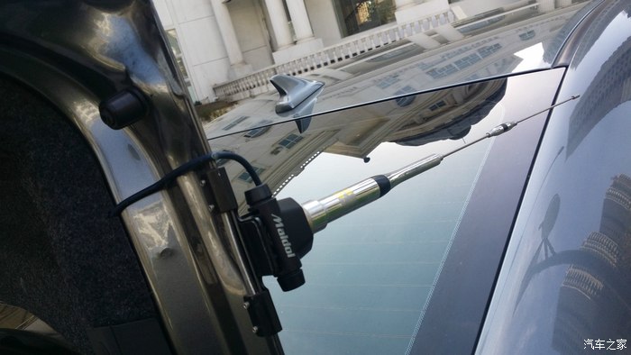天线平时用短天线,采用老鹰CHL-18双段天线,长度39cm,耐入60W,增益2.15db(145MHz)/3.8db(435MHz)。安装后刚好不影响后备箱开启。