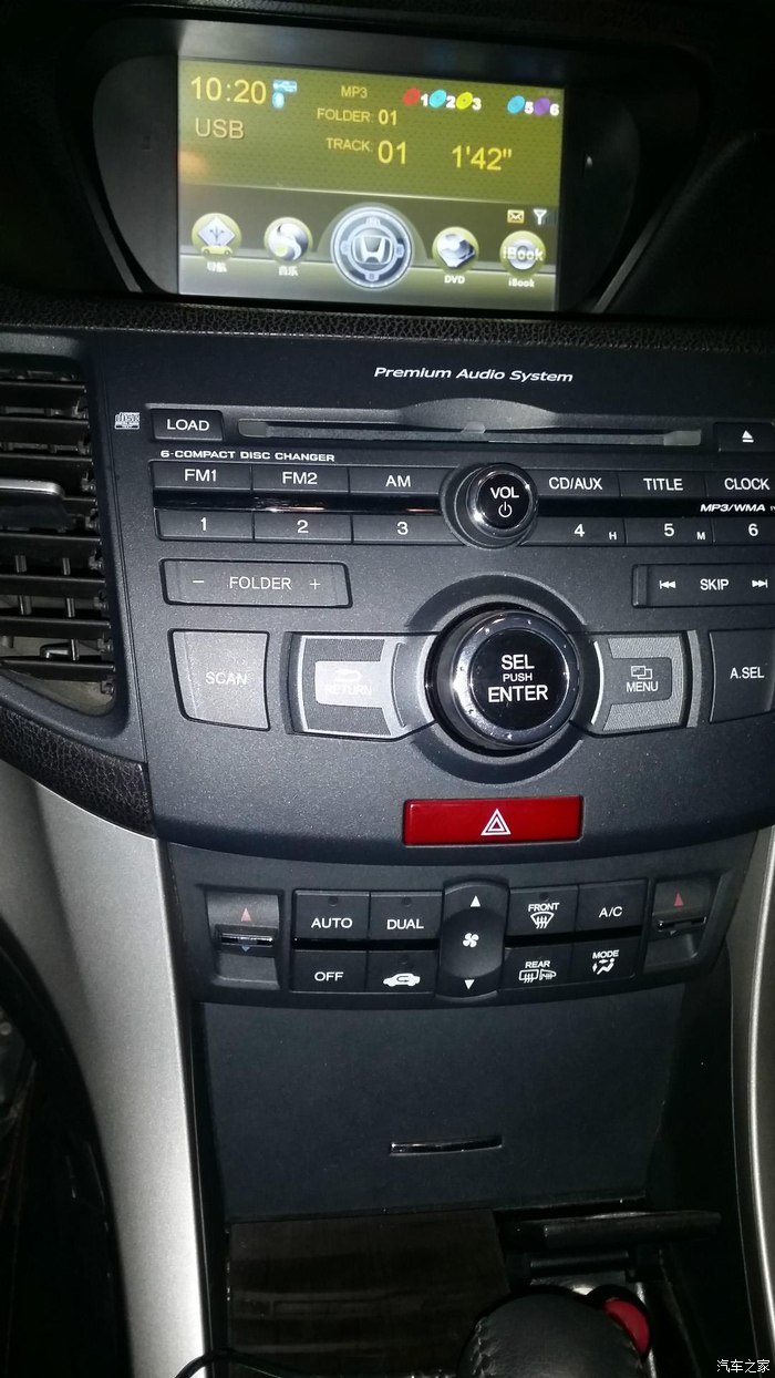 导航是4S店送的,路畅IBook2,这是感觉很好的一款导航,可以加装蓝牙,接收OBD信息,另外可以加装3G无线网卡,完成娱乐和定位等网络功能。我安装时间把配套的DVD光驱拆掉,没有安装,第一是DVD对我来说没有什么用(用USB拷贝电影更容易一些),第二是配的DVD指示灯太亮,有点山寨,第三是真心感觉这个位置有一个储物盒很有必要。不安装DVD光驱不影响其他功能,建议加装这款导航时可不安装DVD光驱。如下图,下面储物盒保留了。