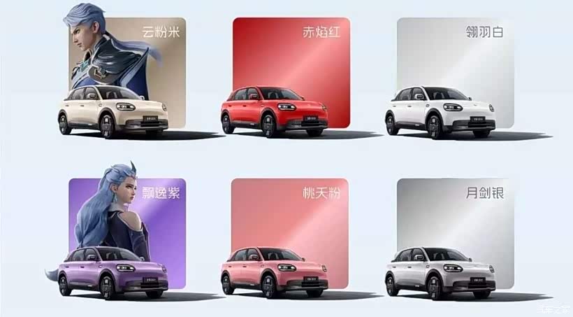 基础款我觉得看起来问题不大,也就是紫色浓了一点点。但是王者荣耀联名款就不太行了,把游戏人物贴到车身上也就算了,居然还把游戏名字也贴上去,消费者买车是自己开的,又不是给游戏公司打广告的,联名的本质应该是把联名方优秀的设计和有代表性的元素和车子本身融合到一起,而不是把车子变成移动广告牌。