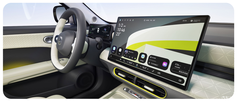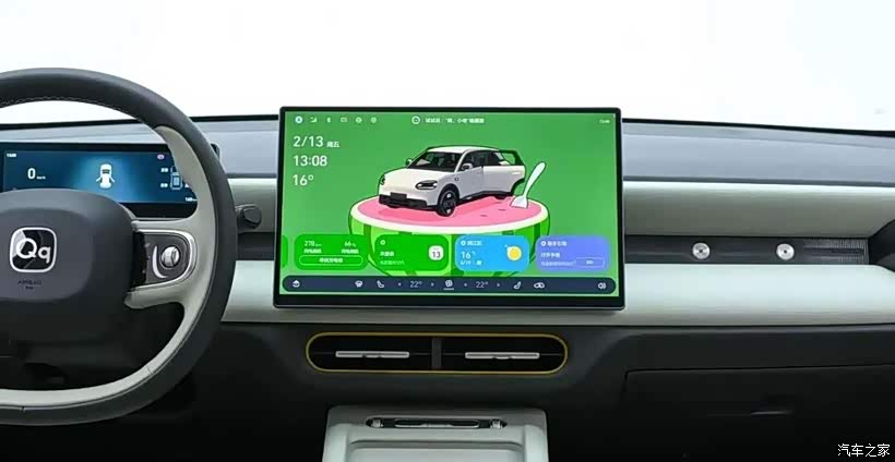 同样等级森严的还有分享版用的是15.6英寸2.5K分辨率中控屏,热爱版则是12.8英寸中控屏,分辨率盲猜会是1080P水平。我发现自从去年蔚来萤火虫上的那套系统UI火了之后,不少友商都跟风出了类似的玩意儿,其中最离谱的当属五菱宏光miniEV,基本上就是照抄。