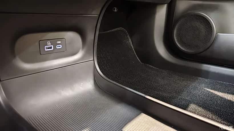 扶手箱下面的掏空区域两个充电口,分别是U***-A和U***-C,合理。后排出风口和这个孤零零的U***-A充电口还是分享版车型的专属配置,热爱版依然啥也没有。