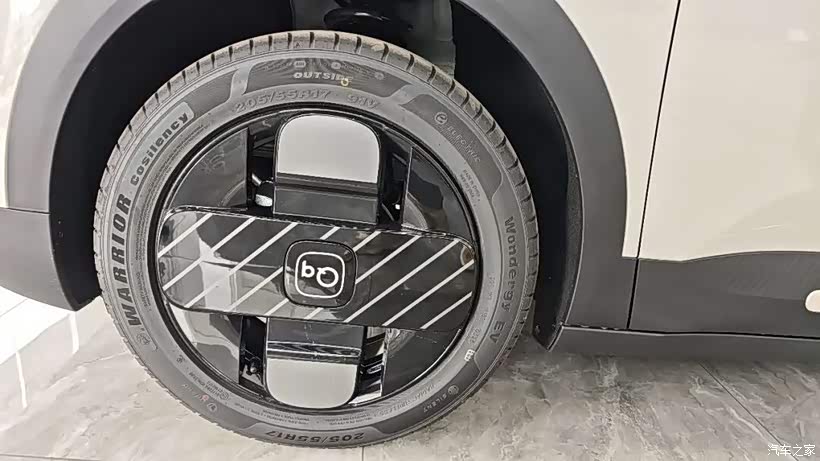 轮毂和轮胎方面,展车上配的是17寸轮毂+回力轮胎,规格是205/55 R17,这个型号的回力轮胎我在京东没找到,作为参考,玛吉斯和韩泰相同规格的轮胎售价分别是350元和510元一条,都是性价比之选。注意,只有分享版车型可以选装17寸轮毂,选装价是2000元,钱不多,但样子不好看,像两条创可贴粘在一起,颜色还不对称。