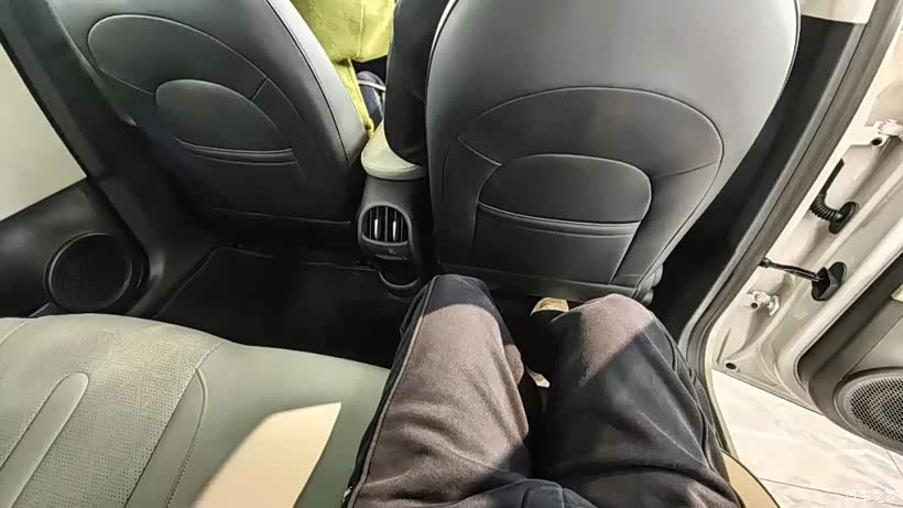 乘坐空间上,无论是前排还是后排都比较宽裕,座椅的皮质柔软、填充厚实,虽然不是真皮(这价位也不可能有真皮),但摸上去触感舒服,后排的坐垫倾斜角度有点大,坐垫有点短。