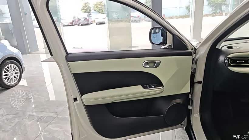 QQ3全系没有全景天幕或者天窗,这点和星愿一样,不如MG4和极狐T1。我刚开始看以为视野上半部分米白色区域都是织物面料,但实际上黑色区域和顶棚之间的这片米白色区域还是硬塑料。这台展车后排车门铰链的阻尼设定是有问题的,当我推开车门到将近70度角的时候,车门依然会快速回弹关上,假设一个力气比较小的孩子从后排下车的话,就会有被车门夹住的风险,希望量产车不要有类似的问题出现。