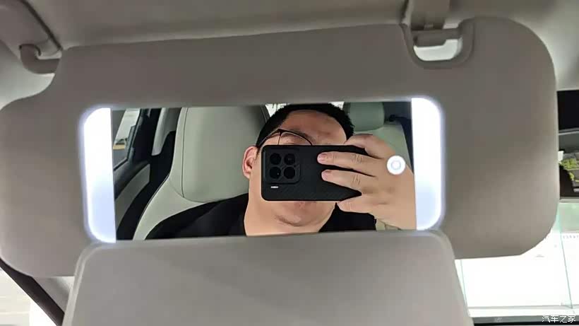 带风冷的50W手机无线充电顶配专属,这又和星愿一样,不过放手机的区域设计比星愿更合理,至少主副驾可以同时放下两部手机。遮阳板化妆镜面积大、带磁吸盖板,可以冷暖双色温调节,好评!