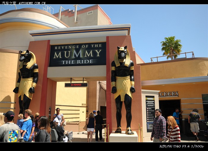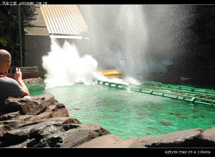 木乃伊归来的隧道过山车,这里没什么宏大场景,主要玩点就是在金字塔、山洞里运行,巨大的过载、和脚底下爬虫子的感觉。如果你喜欢推背感,欢迎坐木乃伊过山车,持续长时间的大过载加速(正向和反向都有),在一面石墙的布景前撞停。幸亏没吃完饭来玩,要不都得漾出来。“撞”墙后,墙缝里、头顶上开始溢出、掉下n多黑虫子,就像电影里一样,然后脚下就会有大量虫子爬来爬去的触觉。女孩纸们此时疯狂地喊叫声很带感。
